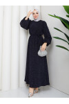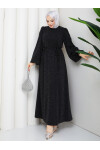 BALONKOL TAŞLI NOBEL ELBİSE - SİYAH