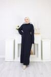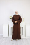 ÇIMALI UZUN KUŞAK DETAYLI ELBİSE-BORDO