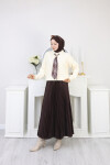 KRAVAT DETAY KAZAK ETEK KOMBİN -KREM
