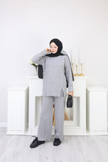 YIRTMAÇ DETAY TRİKO TAKIM-GRİ