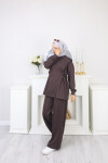 Günlük şıklığı ve konforu bir arada sunan bu iki parçalı takım, modern ve sade tarzı benimseyen kadınlar için ideal bir seçimdir. Yumuşak ve kaliteli kumaşı sayesinde gün boyu rahatlık sağlarken, minimalist kesimi ile zarif bir duruş kazandırır. Üst kısmı 77 cm uzunluğundadır ve kalçayı örten rahat kesimiyle hareket özgürlüğü sunar. 100 cm uzunluğundaki pantolonu ise düz paça formu ile klasik ve sportif kombinlere uyum sağlar.