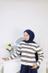 VN ÇİZGİLİ KISA HIRKA -KAHVERENGİ