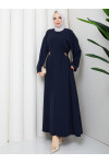 YANLARI GOLD DETAY ELBİSE - LACİVERT