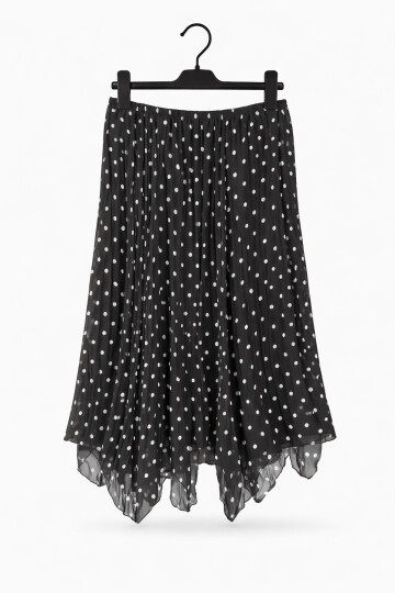 PUANTİYELİ ŞİFON ETEK - SİYAH