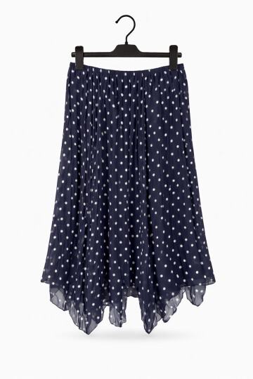 PUANTİYELİ ŞİFON ETEK - LACİVERT